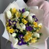 Яркий букет из ирисов , Тюльпанов с ромашками и нарциссами в Холмске